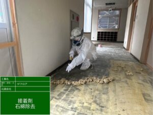 アスベストを含む建材は、専用工具を用いて丁寧に取り外されます。作業中は水や薬剤を散布し、粉じんの飛散を防止します。作業員は防護服と呼吸用マスクを着用し、安全性を確保しながら進めます。